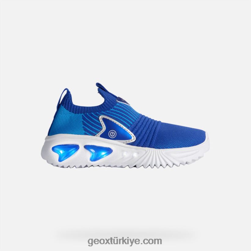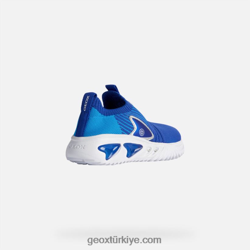Erkek çocuklar için yastıklamalı, nefes alabilen tasarıma sahip, aktif görünümlü slip-on spor ayakkabı. örme kumaştan ve deri efektli malzemeden yapılmış, asil ve açık mavi üst kısım, çağdaş estetiği ile kesinlikle keyif verecektir. şeffaf dış tabanın içine yerleştirilmiş ışıklar pillerini şarj edecek ve günlerini fırtına gibi geçirmelerine yardımcı olacak.