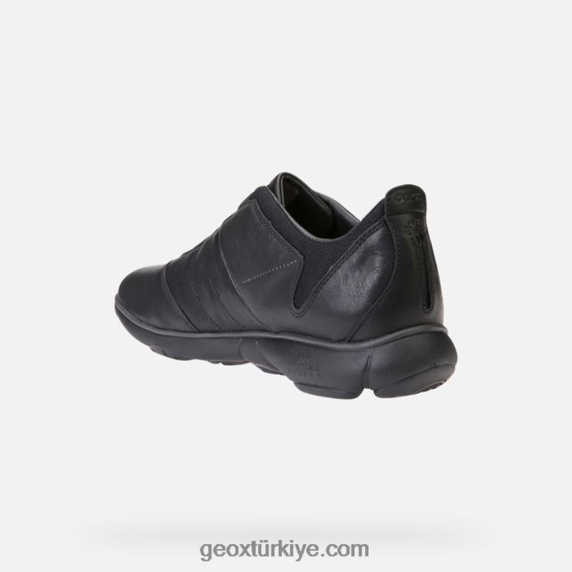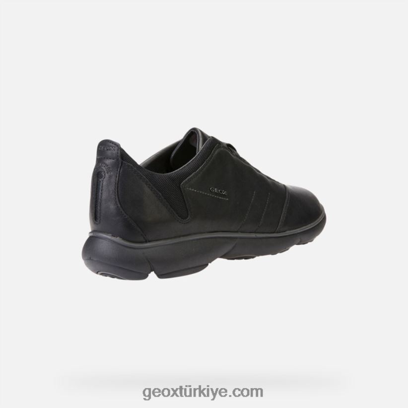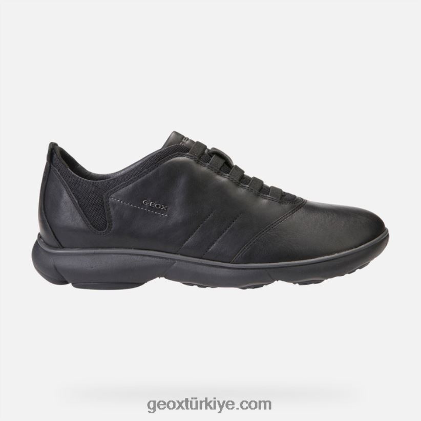 tamamen siyah bir palette, rahat, ultra nefes alabilen, düşük kesimli erkek spor ayakkabısı. ikonik şıklığı örnekleyen nebula üstün düzeyde nefes alabilirliğe sahip, son derece hafif ve rahat bir spor ayakkabıdır. eskitme siyah deriden rafine monokrom silüetiyle kolayca eşleşecek ve modanın kaprislerine meydan okuyacak.Modern bir tasarımın maksimum konforla birleşimi sonucu ortaya çıkan nebula, geox teknolojisinin zirvesini temsil ediyor.