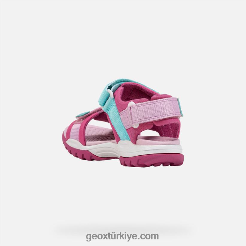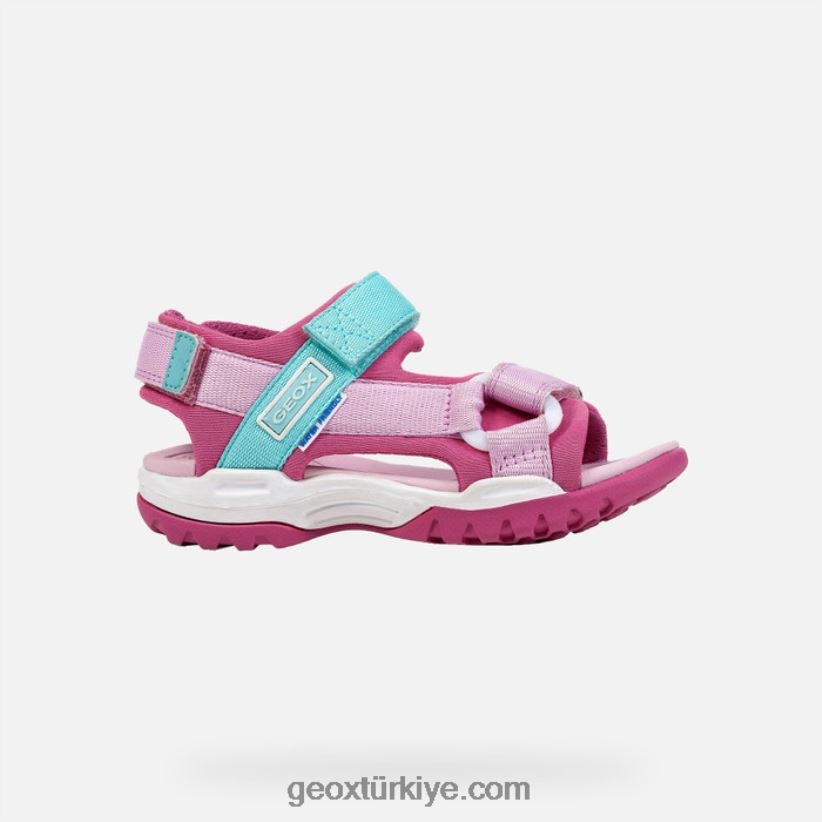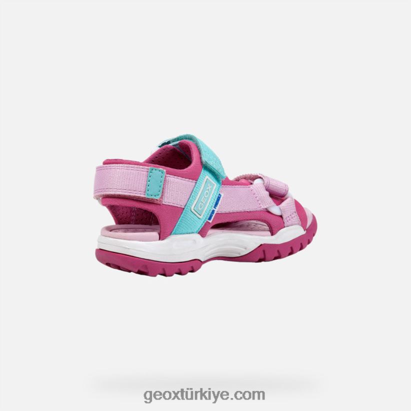 rahat, su dostu tasarıma sahip, nefes alabilen kız çocuğu sandaleti. Borealis, fuşya pembesi ve soluk pembe paletinde likra ve kumaştan yapılmış outdoor tarzı bir sandalettir. pratik ve çok yönlü, açık hava etkinlikleri için mükemmeldir.