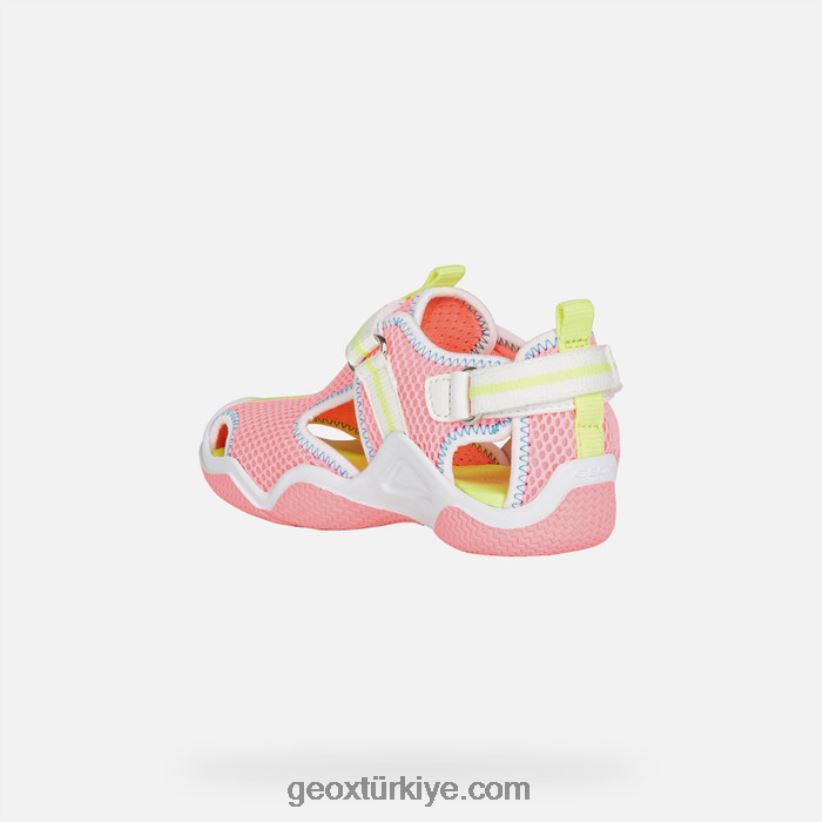 açık hava aktiviteleri için kız çocukları için su dostu rahat sandalet. neon-fuşya-pembe ve beyaz renk grubunda tamamen fileden yapılmış sayası ile wader, hem suda hem de su dışında giyilebilen, nefes alabilen bir sandalettir. burun ve topuktaki koruyucular, küçük kızların günlük maceralarının tadını çıkarırken ayaklarını tamamen güvende tutmak için tasarlandı.
