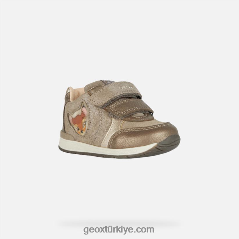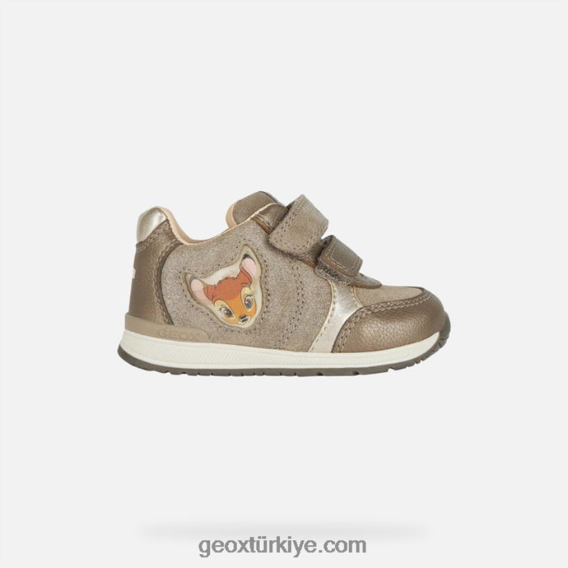 koşu ayakkabısı havası ve günlük kullanım hissi veren ilk adım ayakkabısı. bej ve platin renk grubunda işlenen rishon, ünlü disney klasiğinde rol alan tatlı geyik bambi'nin bir resmini içeriyor. nefes alabilen ve esnek olan bu stil, harika şeylere doğru yürürken yollarını aydınlatacak parlak süet ve sedefli deriden bir sayaya sahiptir.