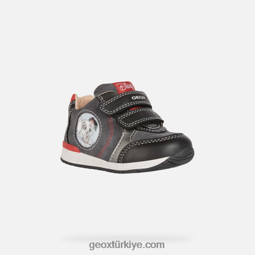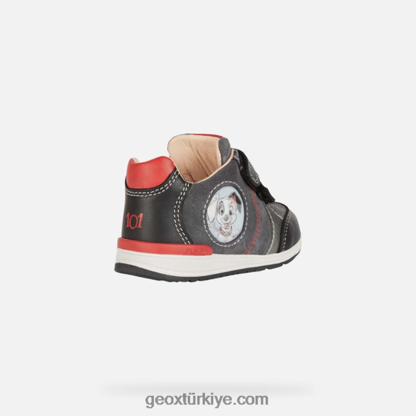 yüz bir Dalmaçyalı'nın sevimli yavrularını taşıyan bebek ilk adım ayakkabısı. Esnek ve nefes alabilen rishon, siyah-koyu gri renk grubuna sahip esnek napa ve süetten yapılmış bir sayaya sahiptir. geox ve disney arasındaki ortaklığın ürünü olan bu gündelik görünümlü ayakkabı, eğlenceli bir hava ve üstün konforu aynı anda sunarak çocukların ilk heyecan verici başarıları için mükemmel bir seçim olmasını sağlıyor. nefes alabilirliközellikler