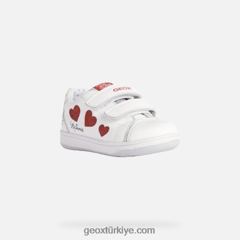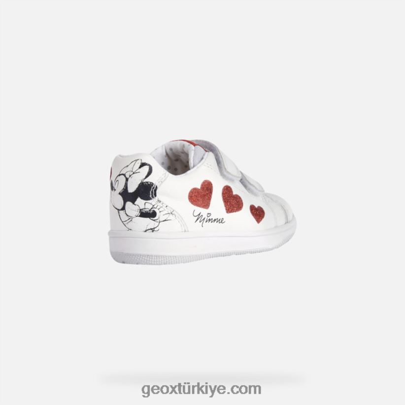 Ayak girişi son derece kolay ve ayarlanabilir kalıplı bebek spor ayakkabısı. kızlar için yeni flick spor ayakkabı, eşsiz rahat tasarımıyla çelişen güzel, romantik bir estetiğe sahiptir. geox ve disney arasındaki ortaklığın bir ürünü olan bu tasarım, küçük hayranların tatlı minnie mouse'a duyduğu sevgiyi simgeleyen çok sayıda sevimli kırmızı kalbe sahiptir. giyilmesi ve ayarlanması hızlı ve kolaydır, esnek beyaz napa saya ile birlikte gelir.