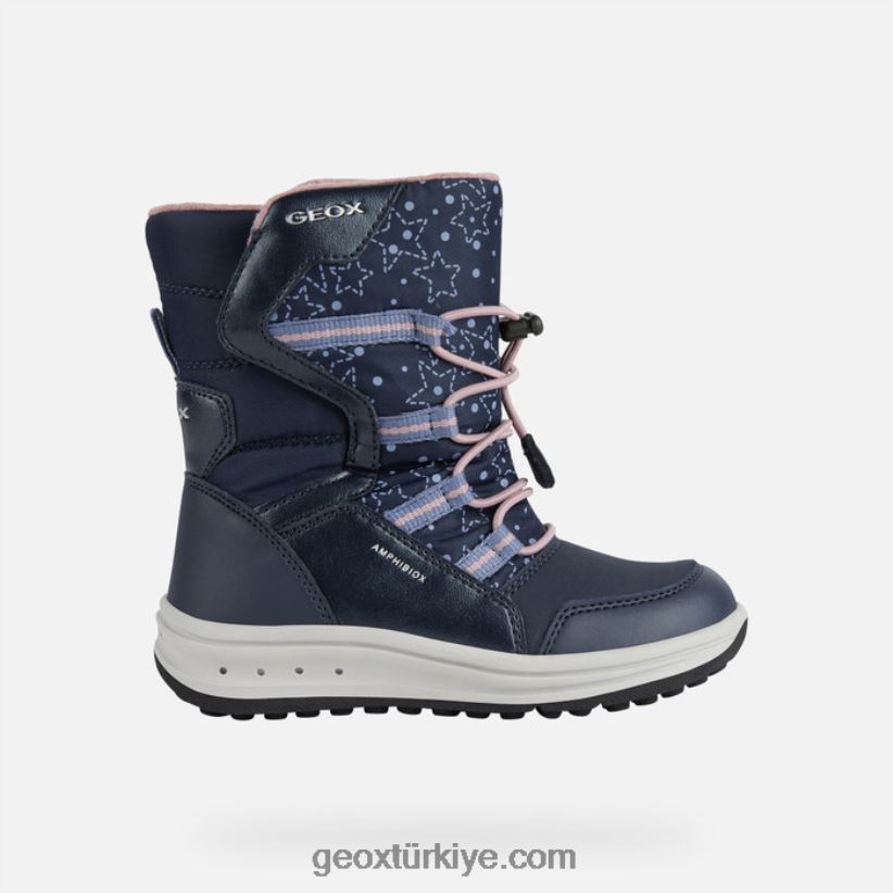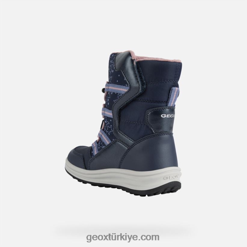 Kız çocukları için klasik estetiğe sahip koruyucu kış botu. roby abx'in su geçirmez yüzeyi ve rahat konforlu yapısı sayesinde yağmur, soğuk ve kar sorun olmaktan çıkacak. Klasik bir kar çizmesinden ilham alan bu ayakkabı, lacivert ve pembe renk grubunda naylon detaylı deri efektli bir malzemeden üretildi ve küçük kaşiflerin kış kıyafetlerine modern bir feminenlik katacak.