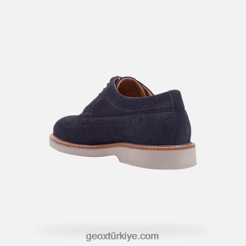 rahat ve çağdaş bir tarza sahip, çok yönlü ve kolay uyum sağlayan erkek mokasen ayakkabıları. hafif, esnek ve yastıklamalı topuğuyla süper rahat gubbio, brogue detayları ve deri şeritleri olan, zanaatkar çekiciliği olan ve lacivert süetten üretilmiş bir derbi ayakkabısıdır. Kıyafet dostu gündelik stili ve benzersiz rahatlığı sayesinde, tüm günlük kıyafetlere nihai, özgür ve kolay dokunuşu geliştirir ve ekler.nefes alabilirlik