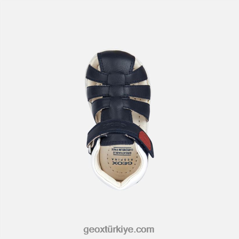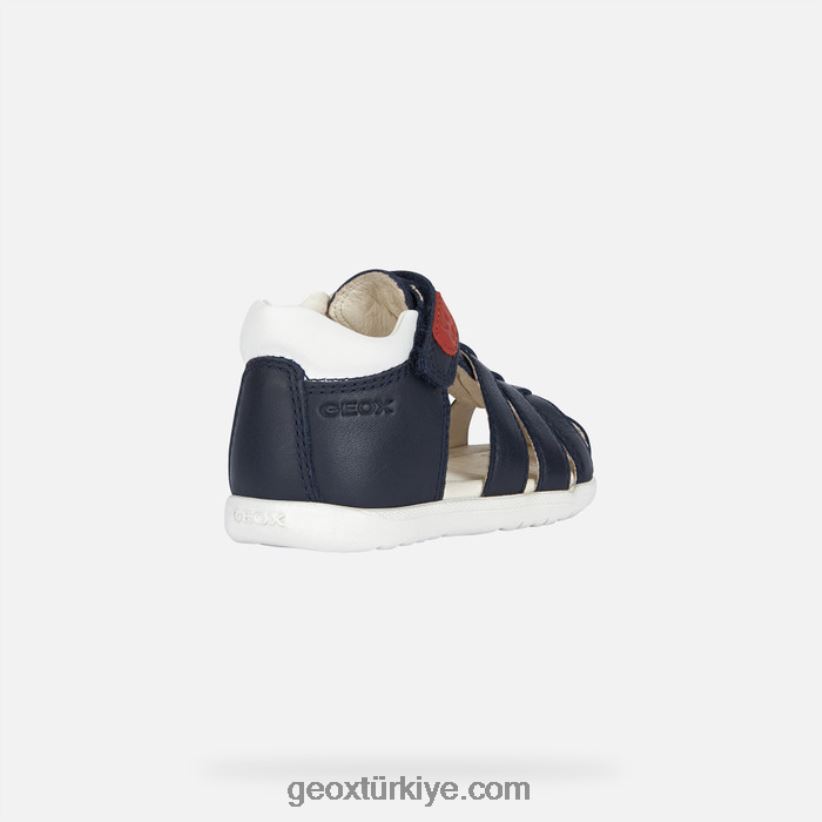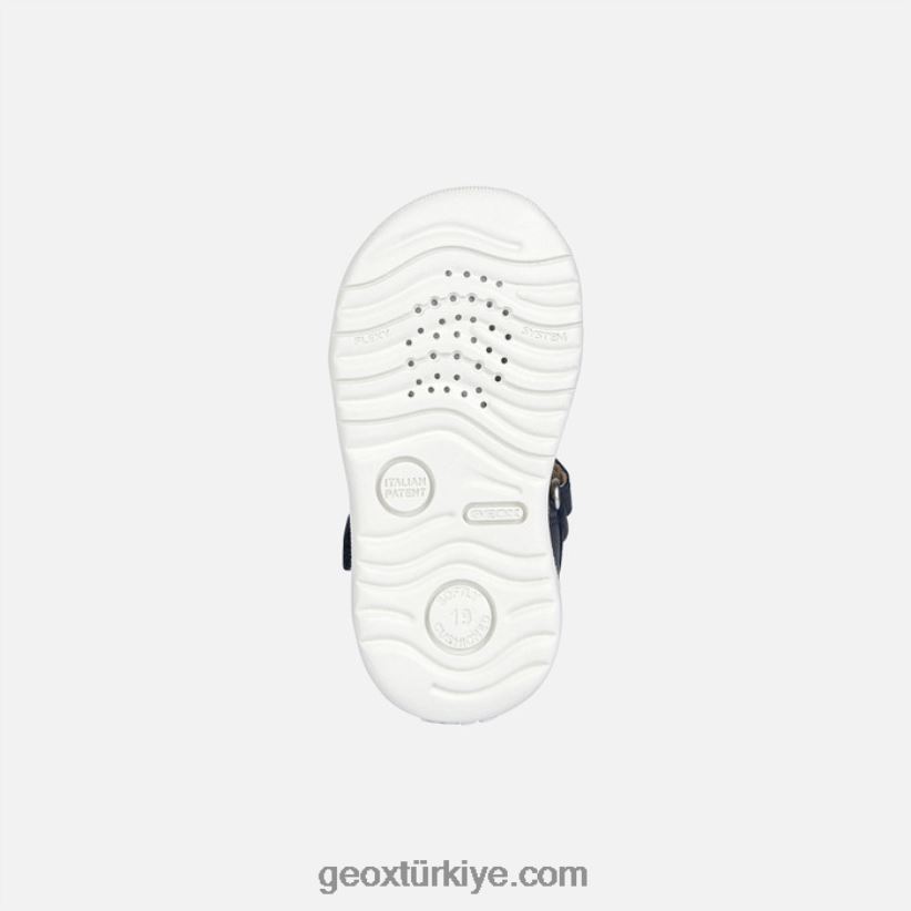 rahat, gündelik bir estetiğe sahip, bebekler için rahat, nefes alabilen ilk adım sandaleti. Çok yönlü lacivert renk grubuna sahip bu macchia versiyonu, napa kumaştan esnek bir sayaya ve balıkçı burunlu ve arkası kapalı deri efektli bir malzemeye sahiptir. esnek, sağlam dış taban, dengeli bir yürüyüş sağlar ve aynı zamanda küçük çocuklara dünyayı keşfetmeye başladıklarında şıklık ve hafiflik sağlar.