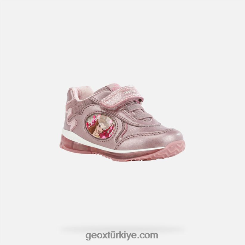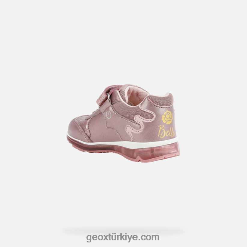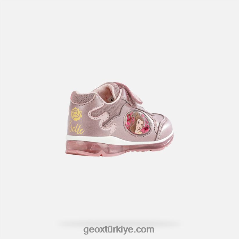 güzellik ve canavar süslemeli kız çocuk spor ayakkabısı. rahat, nefes alabilen ve son derece çekici olan todo spor ayakkabı, özel bir düğmeyle açılıp kapatılabilen ışıklara sahip şeffaf bir dış tabana sahiptir. Koyu pembe sedefli deri efektli bir malzemeden üretilen bu spor ayakkabı, ayakkabı hareket ettikçe çırpınan küçük kalplerle çevrili prenses belle'i tasvir eden bir yan süslemeye sahiptir.nefes alabilirlik özellikler