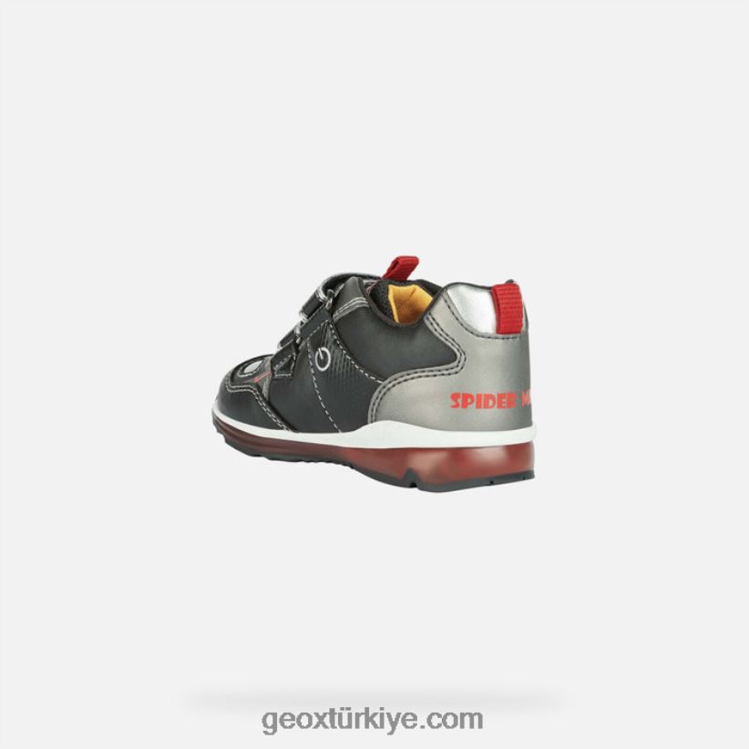 küçük örümcek adam hayranlarına özel, rahat tasarımlı, nefes alabilen orta kesimli bebek spor ayakkabısı. geox ve marvel arasındaki ortaklığın bir ürünü olan bu todo, kırmızı sıçramalara sahip siyah ve kurşun grisi bir palette gelir. saya, baskılı ve düz deri efektli malzemenin karışımından yapılmıştır ve şeffaf ışıklı taban, her adımda daha fazla eğlence sunar.nefes alabilirliközellikler