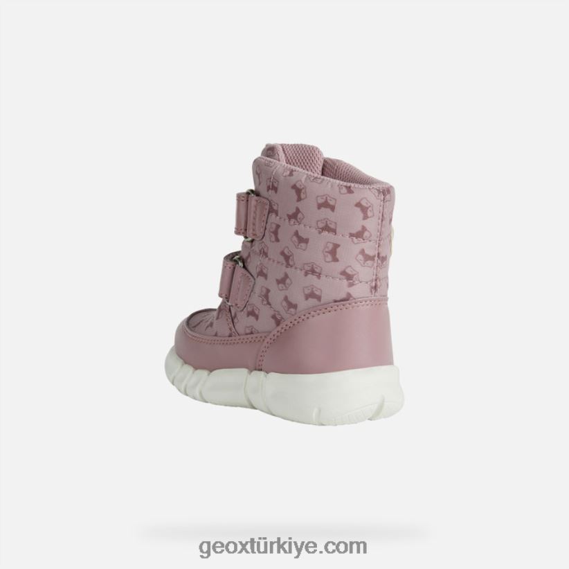 geleneksel kar ayakkabılarından ilham alan kız çocukları için su geçirmez, rahat bilekte bot. Üstün esneklik seviyelerine sahip olan flexyper abx, baskılı ekonilden yapılmış, rahat, su geçirmez bir ayakkabıdır. ve koyu pembe bir palette sedefli deri efektli malzeme. şehirde veya dışarıda, havayı uzak tutacak ideal bir günlük giyim parçası.