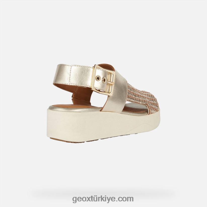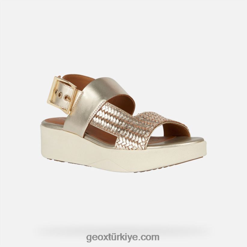 şehir havası ve modern hislere sahip kadınlar için hafif yastıklamalı platform sandalet. Bu alışılmadık şekilde zarif açık altın rengi model, metalik ve örgülü deriden yapılmış bir üst kısma sahiptir ve tokalı bir kayışla bağlanır. konfor ve stil arasında ideal bir denge kuran laudara, bir dizi farklı günlük kıyafeti tamamlayacak ve onları bir farklılık çizgisiyle yükseltecek.