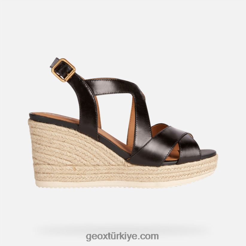 yüksek kama üzerine oturan, şehir stili ve tatil kıyafetleri düşünülerek tasarlanmış, kadınlar için rahat, hafif sandalet. Siyah bir paletle işlenmiş, ikonik espadril tarzında örgülü bir tabanın üzerinde duran düz deri sayaya sahiptir. ponza, feminen bir estetiğe sahip, rahat ama zarif bir ayakkabıdır ve yaz mevsiminde giyilen kıyafetlerin en iyisini ortaya çıkaracaktır.nefes alabilirliközellikler