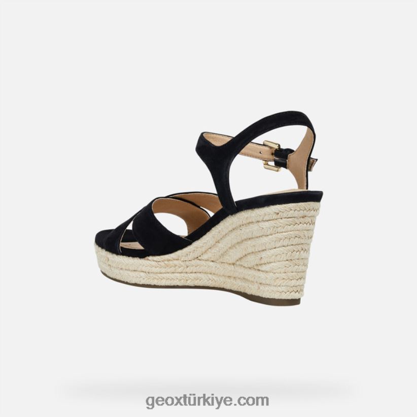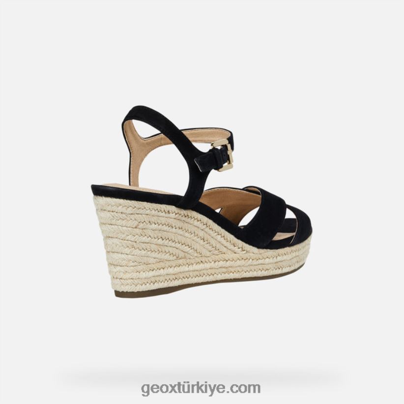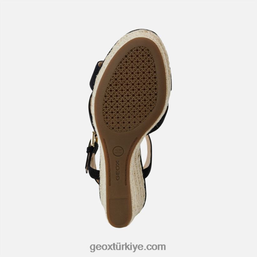 kama üzerinde çok yönlü rahat kadın sandaleti. soleil, klasik bir yazlık sandalet ve her türlü stil ikilemini çözecek bir kadın gardırobu. siyah süet kumaştan üretilmiş, kolay uyum sağlayan tasarımıyla günlük ve boş zaman kıyafetlerini tamamlayacak, espadril tarzı jüt kama üzerine oturtulmuş ve orta yükseklikteki topuğuyla figürü uzatacak.klasik geox kauçuk taban, özel bir patente dayanmaktadır. delikli taban ile dirençli, nefes alabilen ve su geçirmez membran kombinasyonu, doğal sıcaklık düzenlemesine izin vererek ayakkabının içinde ayakları gün boyu kuru ve rahat tutan mükemmel bir mikro iklim yaratır.