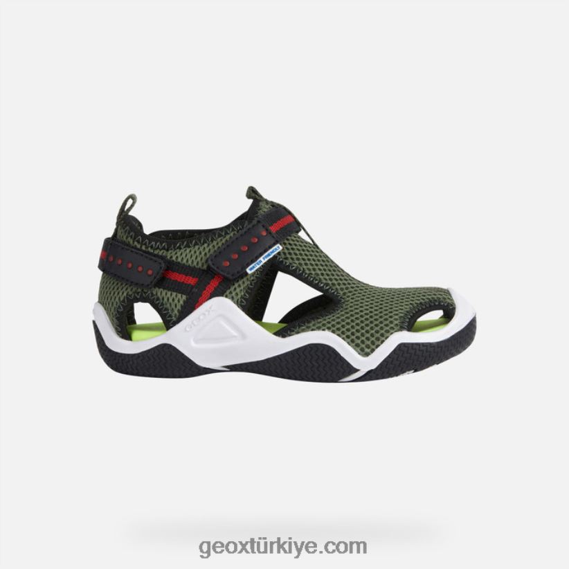 rahat, nefes alabilen tasarıma sahip, su dostu erkek çocuk sandaleti. Tamamen asker yeşili ağdan yapılmış olan wader, hafif yürekli açık hava eğlenceleri ve oyunları için mükemmel, nefes alabilen bir sandalettir. ayrıca parmak ve topuk koruyucusu vardır ve suda ve su dışında giyilebilir.