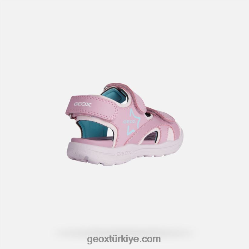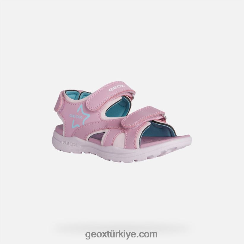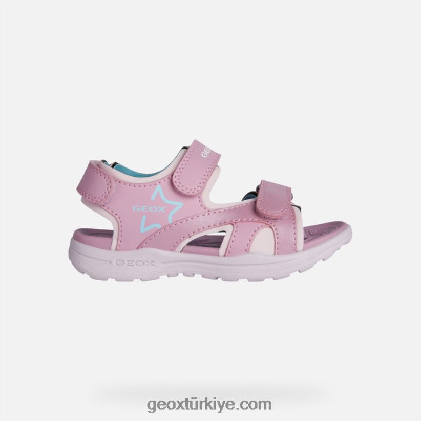 Kolay giyilen ve ayarlanabilir kesimli rahat kız çocuğu sandaleti. pratik ve çok yönlü, vaniett sandaletin bu versiyonu, pembe ve deniz yeşili renk grubunda deri efektli bir malzeme ve sedefli deri efektli bir malzemeyle sunulur. Yazın çok yönlü bir ayakkabı olan bu nefes alabilen ayakkabı parçası, aktif enerji ve gündelik çekicilik yayar ve onu resmi olmayan kıyafetleri mükemmel bir şekilde tamamlar.