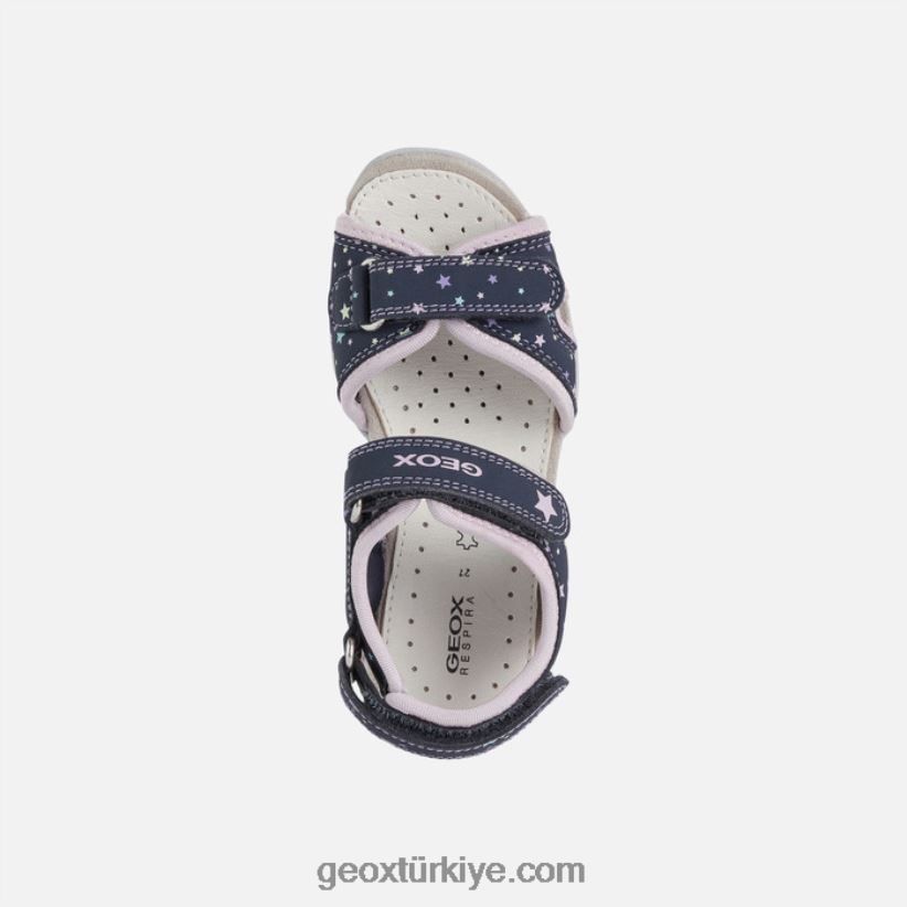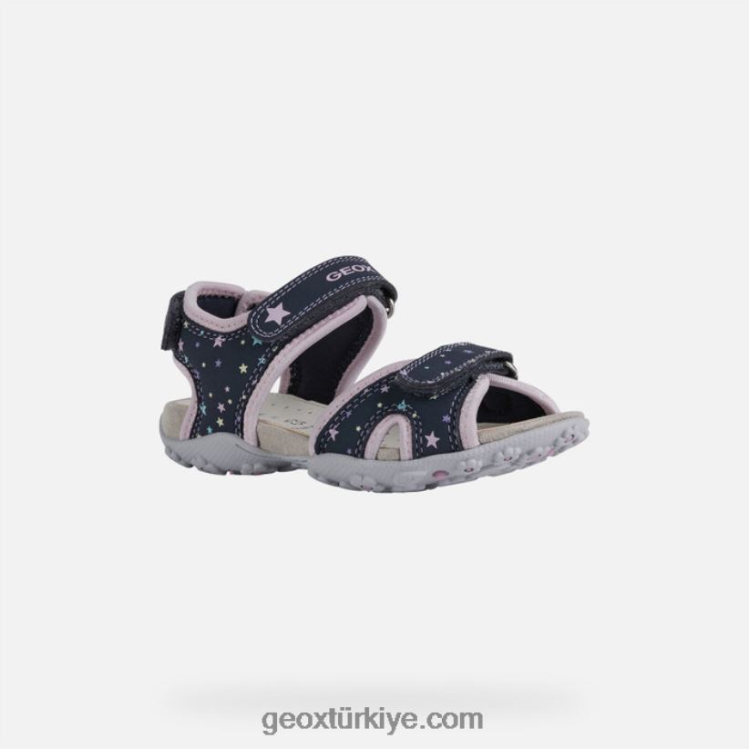 rahat, çok yönlü bir tasarıma sahip, romantik kız çocuğu sandaleti. Yaz maceracıları için mükemmel bir seçim olan roxanne, lacivert-pembe renk grubunda deri efektli bir malzeme ve likradan üretilmiş, rahat, nefes alabilen bir sandalettir. güzel yıldız kümeleriyle dolu, çekmesi kolay ve çok sayıda farklı görünümü ekstra orijinal gösterişle yükseltecek.