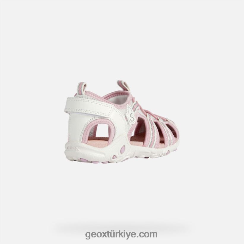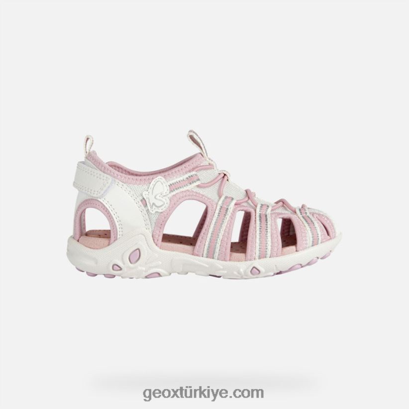 sandal yabanmersini kız beyaz/pembe Geox B60TP61883