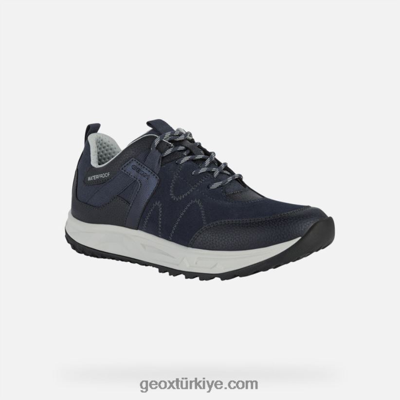 gündelik bir havaya ve aktif bir görünüme sahip, su geçirmez, nefes alabilen, düşük kesimli kadın spor ayakkabısı. İpuçlarını bir koşu ayakkabısı tasarımından alan delray abx, son moda koyu kot paletinde süet ve nubuk efektli bir malzemenin kombinasyonundan üretildi. hem işlevsellik hem de rahatlık hissi sağlayarak, şehirde veya kötü havalarda bile iş dışındaki aktiviteler için ideal bir ayakkabıdır.