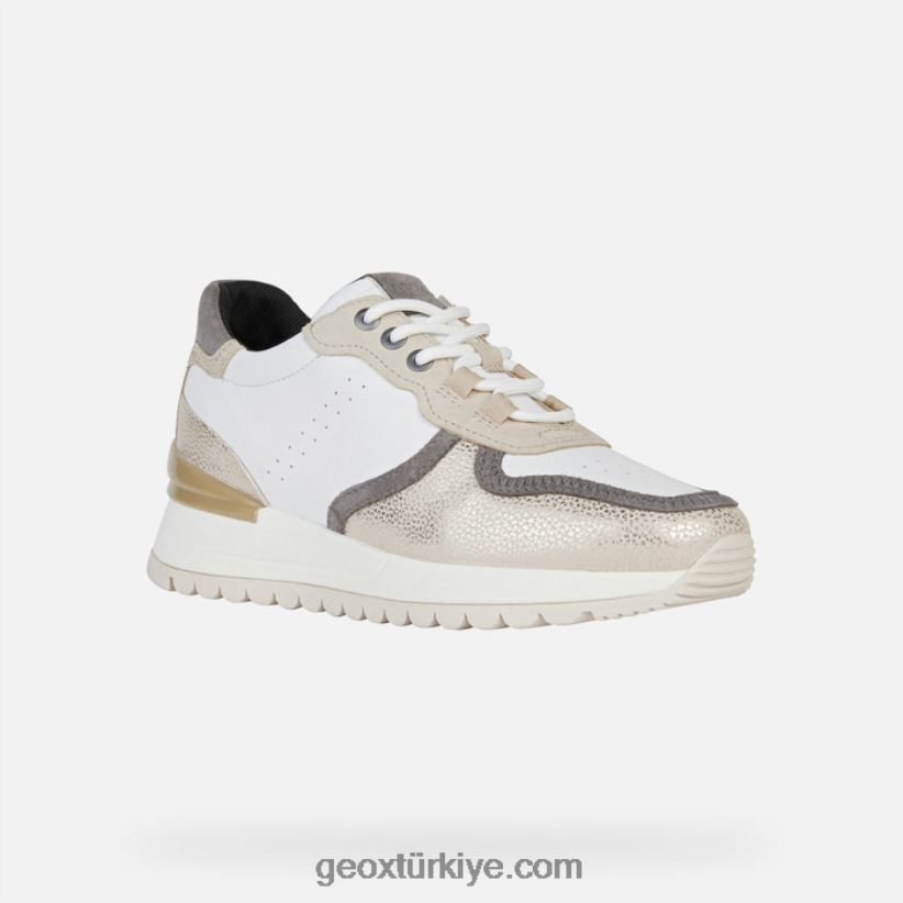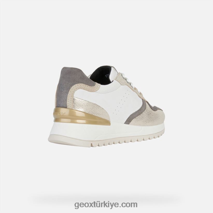 koşu ayakkabısı tasarımına ve rafine görünüme sahip, nefes alabilen, rahat kadın spor ayakkabısı. desya, beyaz ve açık bejin nötr tonlarını metalik vurgularla birleştiren çarpıcı bir sayaya sahiptir. Günlük-şık kıyafetlerle tarz oluşturmak için ideal olan bu stil, yumuşak napa ve metalik eskitme deriden yapılmıştır.