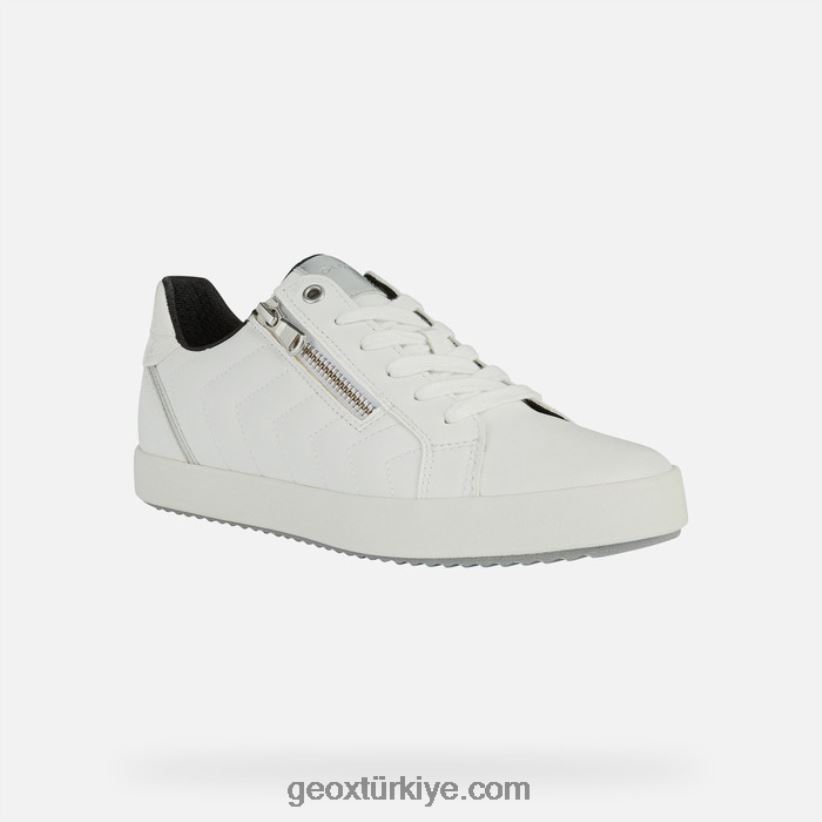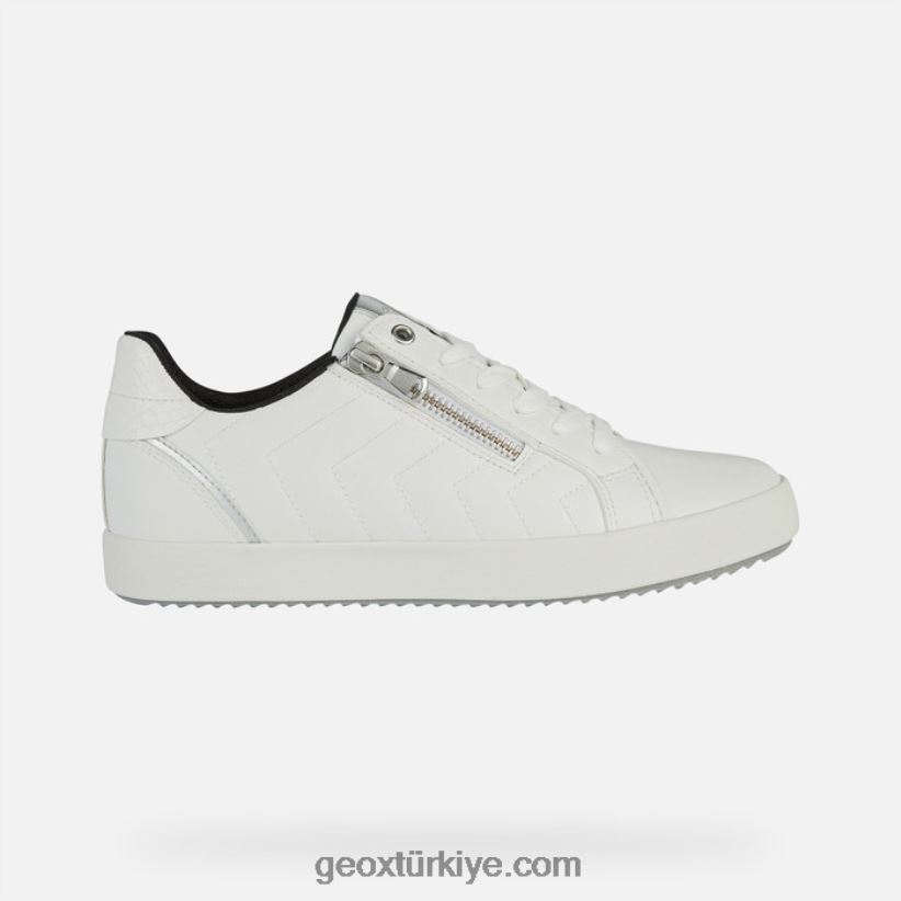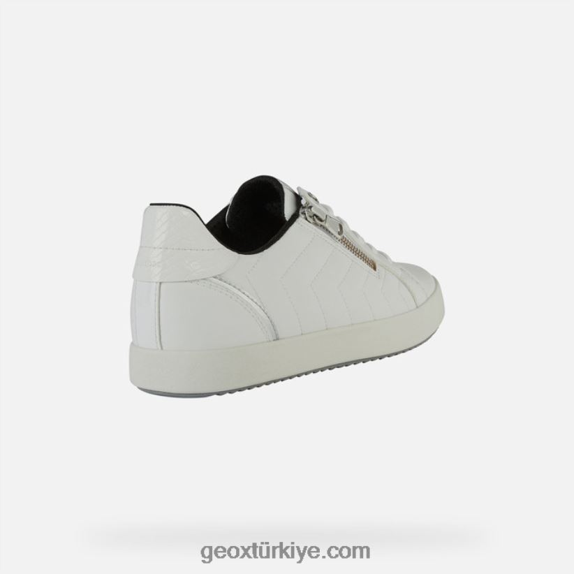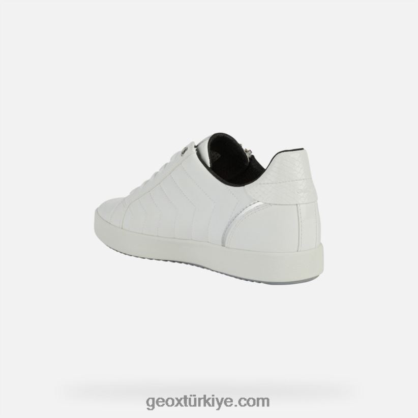 nefes alabilen tasarıma sahip, düşük bilekli, rahat kadın spor ayakkabısı. Beyaz bir palette işlenen bu rahat blomiee spor ayakkabı, piton tarzı ayrıntılara sahip deri efektli bir malzemeden bir sayaya sahiptir ve en son gençlik trendlerine layık, çağdaş görünümlü bir kutu taban üzerinde durmaktadır.