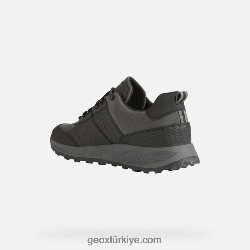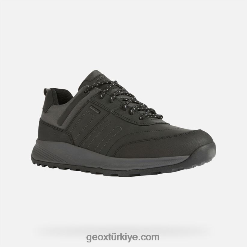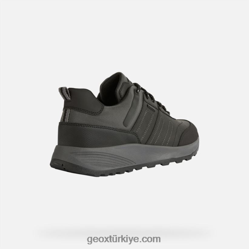 Şehir için tasarlanmış, ancak açık hava tonlarıyla dolu, düşük bilekli, su geçirmez erkek spor ayakkabısı. terrestre abx'in bu versiyonu, mumlu deri efektli malzeme ile siyah ve kömür grisi palet kumaş kombinasyonundan yapılmış bir sayaya sahiptir. Enerji ve gösteriş saçan bu tasarım, en kötü hava koşullarında bile konfor ve koruma sağlarken günlük giyimle kolayca eşleşecek.