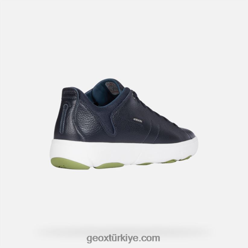 İkonik rahatlık ve hafiflikle dolu dekolte erkek spor ayakkabısı. eskitme lacivert deri, nebula y'de yenilikçi kontrast oluşturan beyaz kutu tabanla buluşarak orijinal havası ve çağdaş estetiği olan ultra nefes alabilen, süper hafif bir spor ayakkabı oluşturuyor.Bu ayakkabılar, olağanüstü nefes alabilirliklerini geox'a borçludur. net solunum sistemi: dünya şampiyonluğunu kazanmış profesyonel yarış arabası sürücüleri ile işbirliği içinde geliştirilen ve tasarlanan teknoloji. maksi delikler olağanüstü nefes alabilirliği garanti eder. Tabanın maksimum su direnci, suyun içeri girmesini önleyen bir membran ile garanti edilir. Ayrıca, özel koruyucu malzemeden oluşan ek bir katman, nefes alabilirlikten ödün vermeden ayağı korur. bu teknoloji, en yoğun aktivite düzeyine bile dayanacak ve en aşırı sıcaklıklarda bile gün boyu maksimum konfor sağlayacak şekilde tasarlanmıştır.