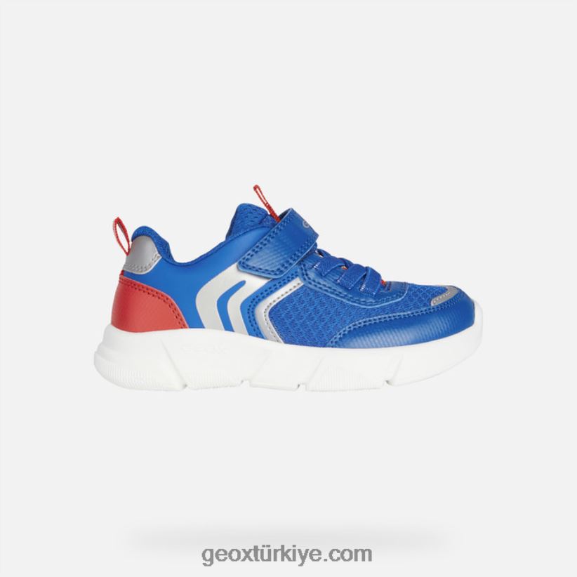 rahat, hafif yapısıyla modern görünümlü erkek çocuk spor ayakkabısı. aril, ön kısmında kolay ayak girişi sağlayan kullanışlı bir cırt cırtlı, nefes alabilen pratik bir spor ayakkabıdır. Deri efektli baskılı bir malzemeden ve parlak kraliyet mavisi ve kırmızı renk grubuna sahip örgüden üretilen bu tasarım, onu enerjik modaya uygun görünümleri mükemmel bir şekilde tamamlayan aktif bir estetiğe sahiptir. kalın taban ekstra rahatlık sağlar ve böylece ayakların inanılmaz düzeyde rahatlık ile şımartılmasını sağlar.