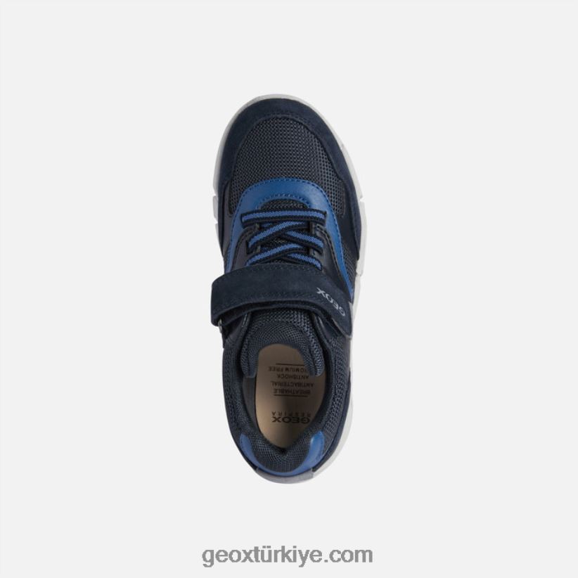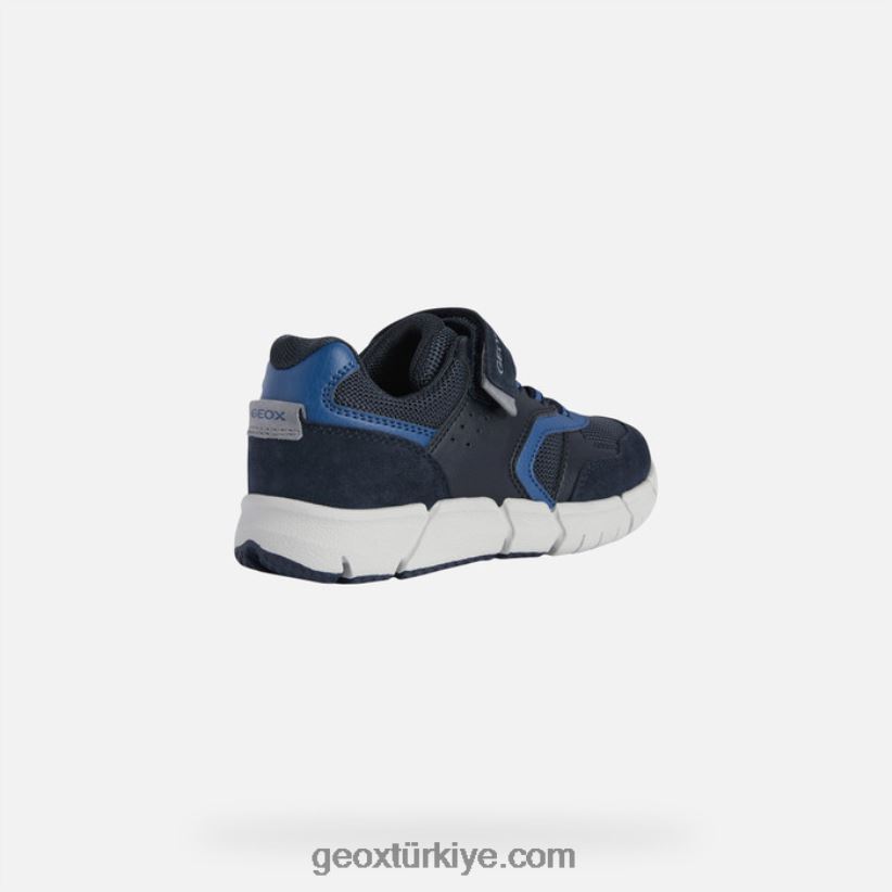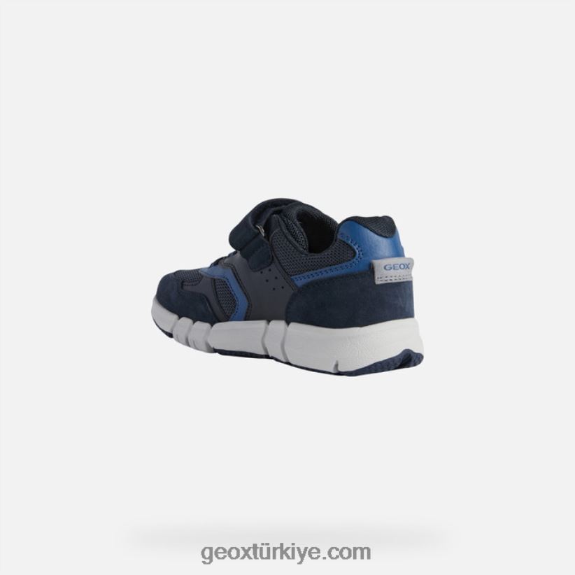 rahat bir havaya sahip, erkek çocuklar için rahat, nefes alabilen spor ayakkabı. Günlük kıyafetlerin mükemmel tamamlayıcısı olan flexyper, lacivert ve lacivert renk grubuyla file ve süetten üretildi ve kontrast oluşturan beyaz dış taban üzerine yerleştirildi. pratik ve çok yönlü, esneklik, nefes alabilirlik ve konfor açısından kendi liginde duruyor.