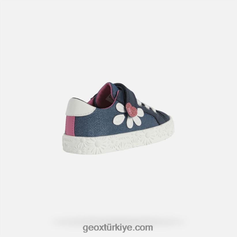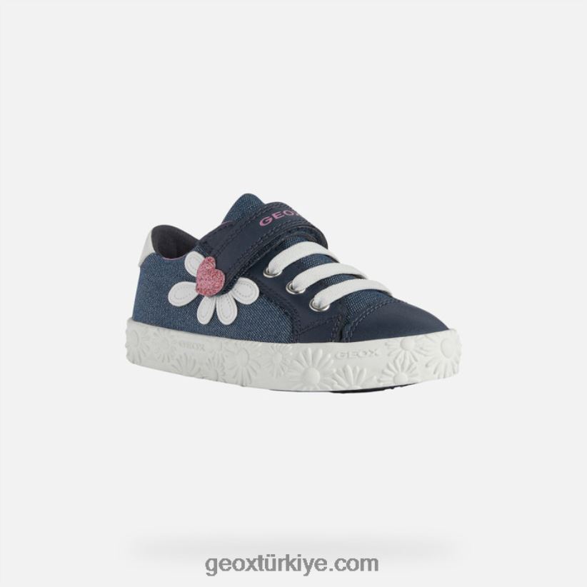 romantik, feminen bir estetiğe sahip kız çocuk spor ayakkabıları. Tatlı, sevimli tasarımıyla ciak spor ayakkabılar özellikle yaşça büyük kızların ilgisini çekecek. üst kısım kalp şeklinde bir ayrıntıyla bir papatya ile süslenirken, vulkanize dış tabanın yan tarafında aynı çiçek motifli yükseltilmiş bir dekorasyon bulunur. parlak kanvas ve deri efektli bir malzemeden üretilen bu ayakkabı, klasik, çok yönlü lacivert bir paletle sunulur.