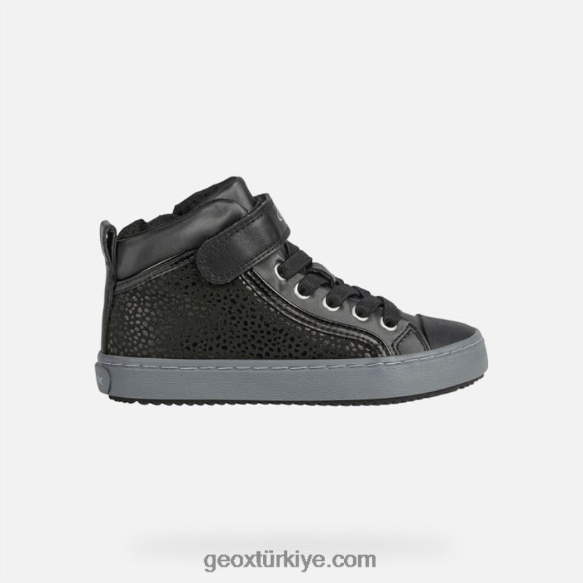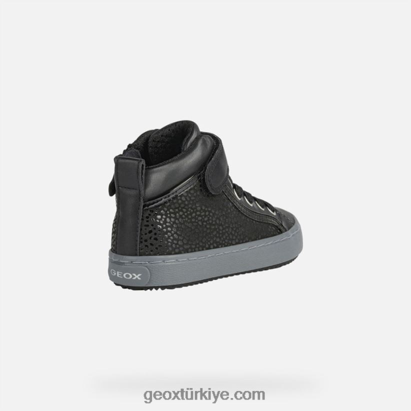 Glam estetiğe sahip, rahat, nefes alabilen kız çocuk spor ayakkabısı. Baskılı süet benzeri bir malzemeden ve sedefli deri efektli siyah malzemeden üretilen kalispera, esnek vulkanize kauçuk dış taban üzerinde durur ve onu son derece çok yönlü kılan parlak vurgulara sahip bir sayaya sahiptir. şehirli şıklığı hissi ile ana uyum sağlar ve hem günlük hem de şık görünümlere çok uygundur.