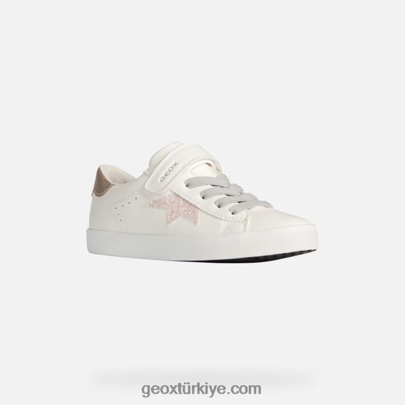 feminen bir his ve ışıltılı bir görünüme sahip, kız çocukları için esnek, nefes alabilen, düşük bilekli spor ayakkabı. pembe detaylarla tamamlanan deri efektli bir malzemede beyaz bir sayası vardır ve ışıltılı yıldız şeklinde bir detayla süslenmiştir. kilwi modaya uygun retro bir şıklık yayar ve güzel havalarda günlük giyimi göz alıcı bir dokunuşla yükseltir.