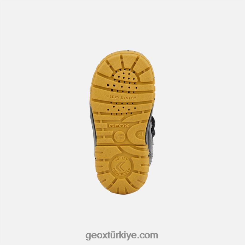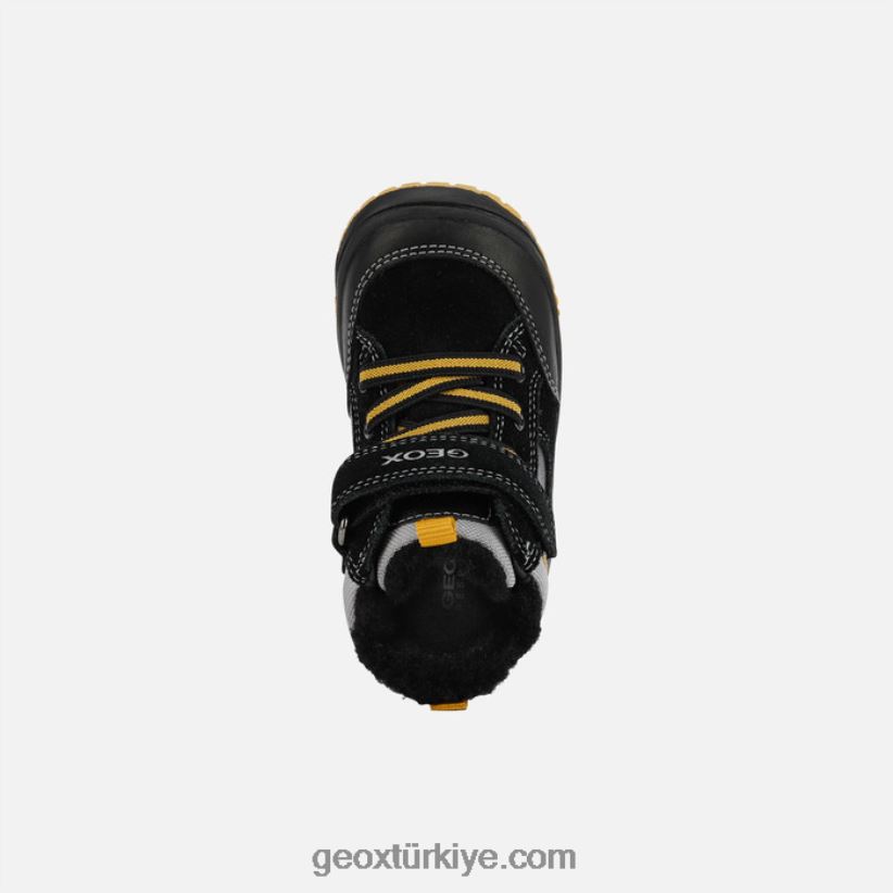 Kış için mükemmel bir tasarıma sahip su geçirmez bebek botu. Süet ve mumlu deri efektli malzemeden üretilen omar, siyah-sarı renk grubuna sahip rahat bir ayakkabıdır. Hibrit yapı, onu kötü hava koşulları için mükemmel bir çözüm haline getirirken koruyucu, nefes alabilen dış taban, gün boyunca rahatlık ve iyi hissetme hissi sağlar.nefes alabilirlik div>